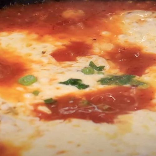 • Por último, coloque a mussarela por cima do frango e tampe a frigideira para que o queijo derreta.
